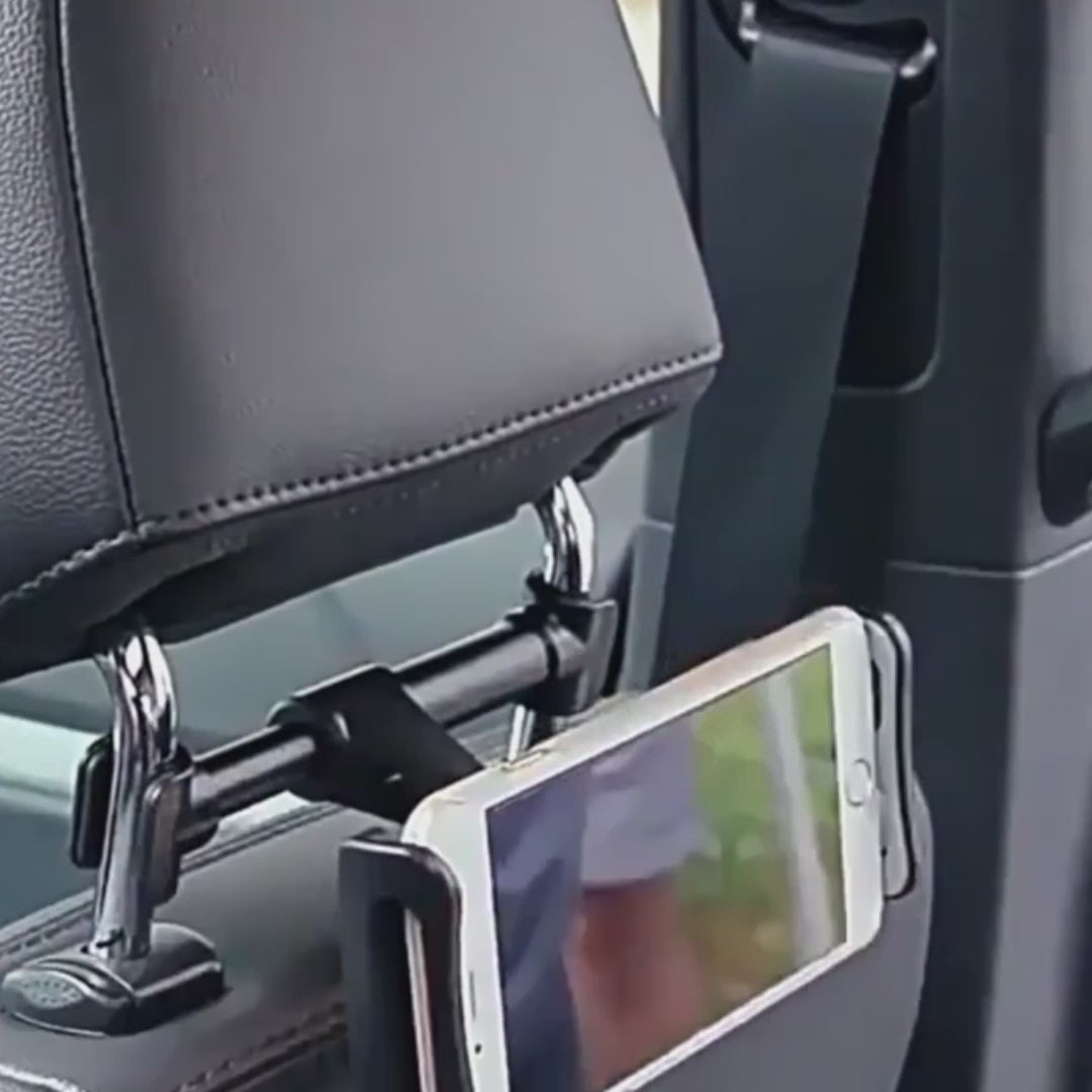 Ce support s'adapte parfaitement aux appuis-tête espacés de 12,5 à 15 cm et peut accueillir des appareils de 10 à 16,5 cm de largeur. Sa rotation à 360 degrés permet à chacun de trouver l'angle de visionnage parfait. Votre enfant pourra ainsi profiter pleinement du contenu sans se tordre le cou.